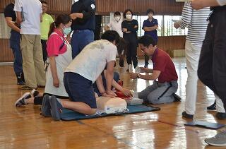 AEDもさすまたも、いざというときに使えなくては意味がありません。教職員は年に1度、これらの使い方について、専門家から実技研修を受けています。