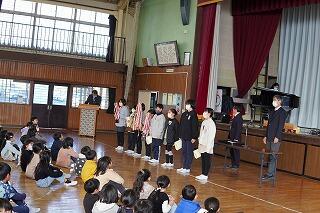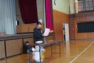 式終了後、児童指導主任から冬休みの過ごし方、学習指導主任からは学習の意欲を高めるお話がありました。
