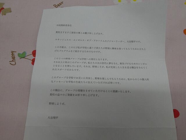 ニュースでも話題になっていますが、メジャーリーグの大谷翔平選手からのグローブのプレゼントが届きました。3学期から大切に使わせていただきます。ありがとうございました。