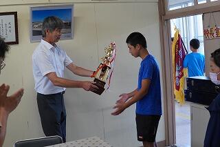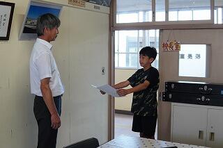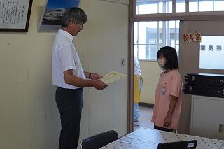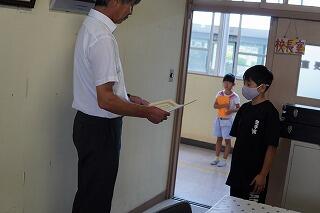 7月20日に表彰伝達を行いました。今回表彰の表彰は、フットベースボール、学童野球、空手、よい歯と口の健康週間に関するものでした。それぞれの分野で入賞した団体の代表や個人が校長先生より表彰伝達を受けました。