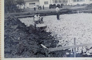 国旗掲揚嗒の基礎工事(54年10月) 「よく学びよく遊べ」の像の基礎工事(54年12月)