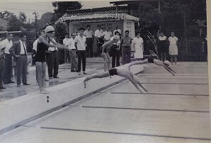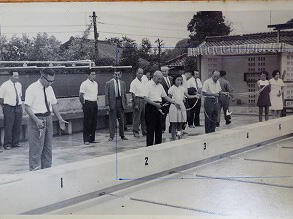 プール開きの様子です。当時の市長さん、校長先生がテープカットをしています。(昭和43年7月)