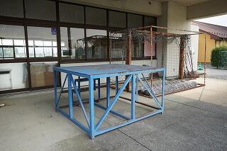 新しい朝礼台を購入しました。青いものは鉄製で重く移動がたいへんでしたが、新しいものはアルミ製で軽く移動も楽になりました。