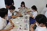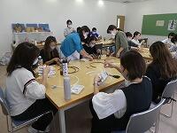 「クラフトかご」作りでは、講師の先生の説明を聞きながら、皆さん真剣に製作していました。お菓子などの小物をを入れるのによさそうな、素敵なかごができました。底が四角い形で、昨年のかご作りより少しレベルアップしているようでした。