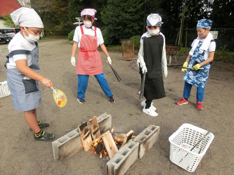 火おこしに苦戦する班、板を焼きすぎてしまった班など様々でした。