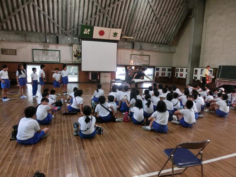 6月15日(木)の音楽鑑賞会が開催されました。県民の日行事として行われました。今回公演をしていただいたのは、ゆかいなアルプスバンド「ハイジの音楽隊」の皆様です。トロンボーン、トランペット、アコーディオン、ボーカルの4人グループの演奏でした。ドイツ語等で歌いましたが、子どもたちはリズムに合わせて体を動かして楽しんでいました。希望者が多い中、各学年代表によるクーグロッケンやダンスの体験コーナーもありました。最後にアルプスの伝統的な楽器アルプホルンの演奏もありました。子どもたちの近くまで来て、演奏してくれたのですごく盛り上がりました。