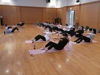 「ピラティス」では、ボールなどを使って、普段伸びない部分をよーく伸ばしたり、インナーマッスルを鍛えたりしていました。「きつーい」とか声をあげながら、楽しく体を動かしていました。