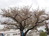 <今朝のソメイヨシノ> 校庭の9本のソメイヨシノが、満開に近い状況で、可憐なピンクの花を咲かせていました。