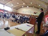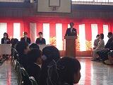 修了式終了後は、一年間お世話になった2名の先生の離任式を行い、代表児童から、お礼の花束を贈呈したり、お一人ずつ、ご挨拶をいただいたりしました。