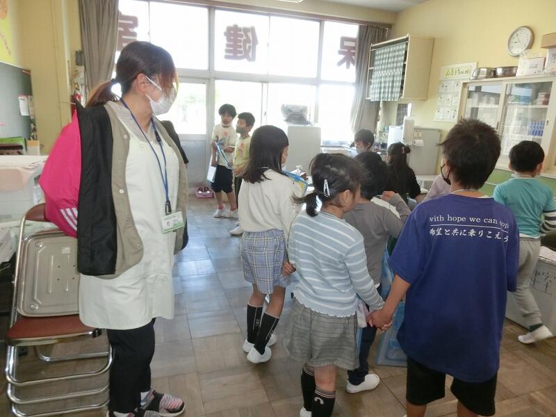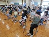 5月9日に、延期となっていた避難訓練を実施しました。震度5弱の地震の後、家庭科室から火災が発生したとの想定です。新学年となり、新しい教室からの避難経路や避難の方法を確認すること、自分の命を自分で守る意識をもつことが大きなねらいです。子どもたちは、先生の指示を聞き、落ち着いて素早く避難できました。災害の際には、状況を把握し、的確に判断することが大切です。子どもたちは、出火場所、避難場所についての放送内容をしっかり把握できていました。