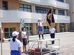 国旗掲揚・降納の係です       記録係・徒競走の赤白の順位を確認中
