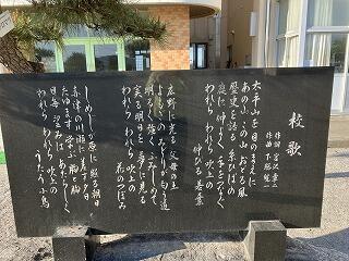 吹上小学校の校歌は、「ジングルベル」の訳詞者で、全国300校の校歌の作詞を手がけた宮沢章二先生の詞に、童謡「かくれんぼ」「たなばたさま」の作曲者である下総皖一先生が曲をつけました。67年間歌われ続けた校歌ですが、コロナウイルス感染症予防のため歌うことを制限されることもあったと思います。運動会では校歌を全校生で歌えるといいですね。校庭に校歌の刻まれている石碑があります。これは昭和58年に卒業記念で建てられたものです。