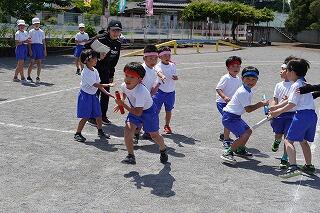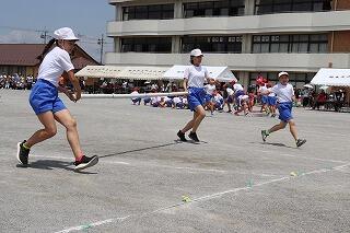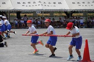 5・6年生「ポールリレー」の様子です。一致団結が勝負の決め手です。