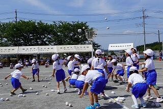 1・2年生の「玉入れ」の様子です。みんなで力を合わせたので、たくさん玉が入りました。