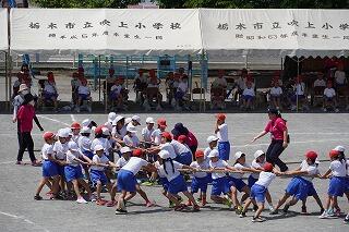 3・4年生の「いとひば綱引き」の様子です。チームの作戦が勝負の決め手です。