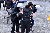 学校運営協議会では、放課後、卒業式会場づくりの一つとして、体育館に赤絨毯を敷く作業を行いました。