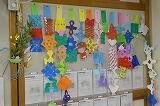 1年生の教室には、手作りの七夕飾りが飾られています。