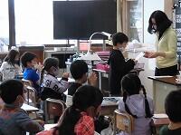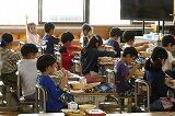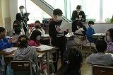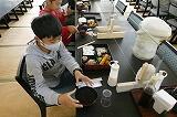 1年給食時間の取材。