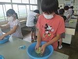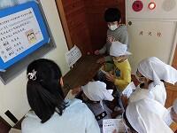 「2校時休み時間に手洗いをしましたか?」の質問に校舎内で過ごした児童は、忘れがちでした。酒精綿を配り、手の全てを拭いてみると、白い綿が黒く汚れる様子に、石けんを使った手洗いをきちんとしなくては・・・・全員が感じていました。