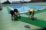 校庭のトラックロープ張り完了。