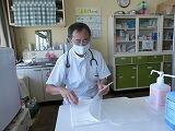 <消毒、衛生>・山井先生は、マスク、フェイスシールド着用・手袋は10人ごとに取り替え、児童一人検診終了ごとに手のアルコール消毒の実施