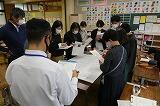 始めに、献立を考えるときにどんなことに注意するか話していただいた後、自分なりに給食メニューを考えました。5大栄養素やいろどり、旬の食材に気を付けながら、それぞれおいしそうなメニューができあがりました。その中で3点は、3学期のリクエストメニューとして、給食週間で全校生に投票してもらう予定です。1組は木曜日に行います。