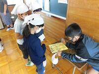 チャレンジした昔遊びは、あやとり、お手玉、おはじき、こま、けん玉、はねつき、めんこです。初めてチャレンジする昔遊びに、子どもたちはとても楽しそうでした。「またやってみたい。」「今度はおばあちゃんと一緒にやりたい。」などという声が聞こえました。