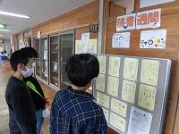 昇降口に、標語やポスターの代表作品を掲示したり、
