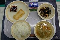 <今日の給食> ご飯・牛乳・イワシの蒲焼き・磯か和え・豚汁