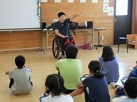体験の後には、車いすバスケットボールを始めるまでのきっかけや、車いすでの生活のこと、車の乗り方などを教えていただきました。子どもからの質問にも、一つ一つ丁寧に答えていただきました。また、渡辺様には、福祉車両についても教えていただきました。