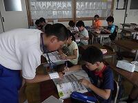 3・4年生の学級に入り、学習や給食、清掃等の指導の手伝いをしてくれました。子どもたちの目線に立って、優しく勉強を教えてくれたり、生活の手伝いをしてくれたりする姿は、小学生の時より一回りも二回りも大きくたくましくなった感じがし、とてもうれしくなりました。子どもたちも大喜びでした。