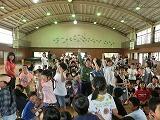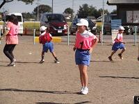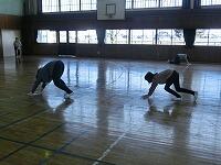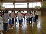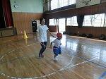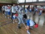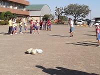 ドッジビーは、ドッジボールのルールで、フリスビーのような円盤形の物をボールの代わりに使って楽しむゲームです。2年生は体育の時間に投げ方の練習をしましたが、思ったところにはなかなか投げられません。お父さんお母さんたちも、飛んでくるドッジビーに当たらないように逃げたリ、キャッチしたり…。短い時間でしたが、親子で楽しいひとときでした。