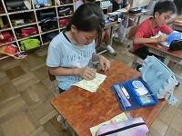 初めてそろばんを使う子が多く、慣れない手つきで緊張しながらの学習でした。それでも、授業の後半にはだんだん慣れ、簡単な計算を楽しむことができました。
