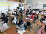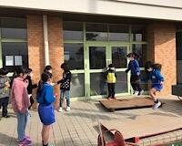 揺れが収まると、教師が安全確認をし、その後児童は、帰りの用意を手早くして外に避難しました。