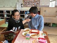 コサージュ作りの後は、一緒に給食を食べました。給食を一緒に食べたのは、1年生の時以来です。お味はいかがだったでしょうか。