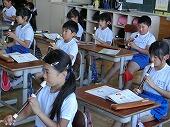 リコーダーで、「おはよう」「こんにちは」「サッカー」などの言葉を表す学習でした。「シ」の音でリズム良く、きれいな音を出す工夫をしました。