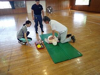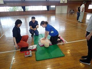 AEDの使い方と心臓マッサージをして心肺蘇生(応急措置)する方法を実技を通して研修しました。
