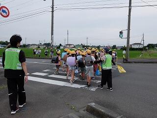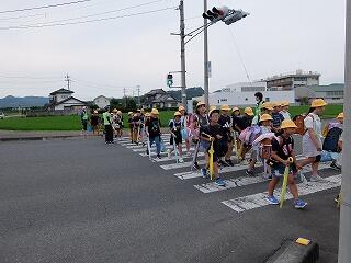 今日は、14:10に1・2年生が下校し、15:00に3年生から6年生が下校しました。3年生から6年生の下校の様子を紹介します。全員一列で前の人に続いて歩いています。交差点では信号機をよく確認して安全に横断しています。教職員も手分けして毎日下校の安全指導に当たっています。PTAの皆様にも朝の登校時や水曜日の下校時の立哨指導でお世話になっています。これからも児童の安全確保へのご協力よろしくお願いいたします。