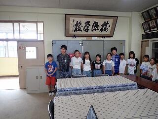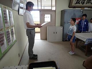 本日終業式の前に表彰伝達がありました。最初に歯と口の健康週間作文・ポスター・標語で入賞した児童とよい歯の児童が表彰を受けました。次にスポーツ関係の表彰を行いました。チアリーディング・ハンドボール・フットベース・空手で優勝や上位入賞の活躍をしました。表彰を受けた方おめでとうございます。今後の活躍を期待しています。