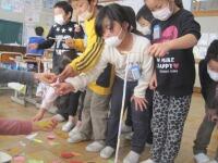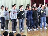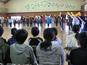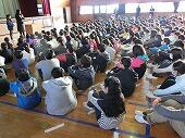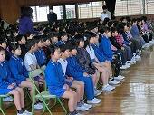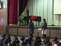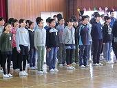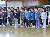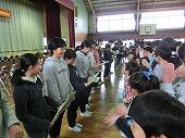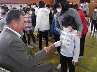 児童代表の作文発表の後、コーラス部による「花は咲く」の歌のプレゼント、全校生によるふれあいじゃんけんをし、心を込めて書いた手紙とメダルをプレゼントしました。