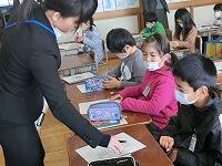 ポイントカードの片面が終わってスペシャルプレゼントをもらった児童です。