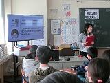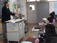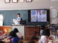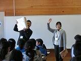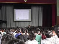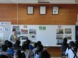 茂木館長さんは、昨年度のに起こった水害のたくさんの被害の写真や解説、実際の避難所となっていた公民館の様子などについて、スライドで紹介してくださり、子どもたちもとても興味をもってお話を聞いていました。
