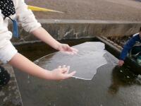 手の洗い方については、始めにアルコールを含ませた脱脂綿で手を拭いて、自分の手の汚れを確かめました。自分の手がきれいに見えていても、手を拭いた後は脱脂綿が汚れていて驚いていました。