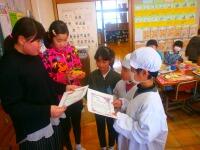 1年生に表彰状を渡しているところです。