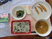 ごはん、牛乳、みそカツ、おひたし、とち介味付けのり、ゆば入りけんちん汁でした。