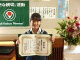 標語で小学生低学年の部で3年成子佳采さんが優良賞を受賞しました。