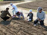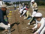 2年生は今日、吹上東部環境保全会の方に教えてもらいながら、野中上公民館の北側にチューリップの球根を植えました。