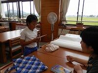 次は、グループごとに虫採りをして、観察しました。大きなバッタやトンボを捕まえることができました。