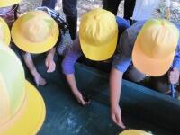 ぐんま昆虫の森に着いてからは、水にすむ生き物・カブト虫の幼虫・アゲハの幼虫の観察を、グループごとに行いました。