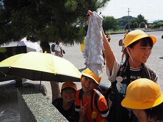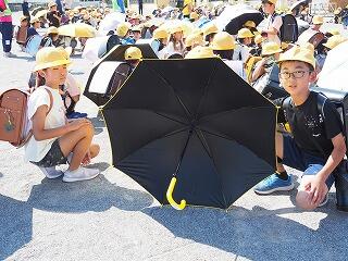 日傘を使用する児童が増えてきました。 傘の裏側は黒色になっています